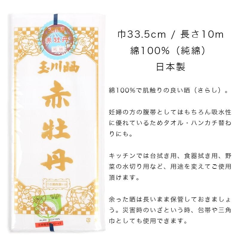 晒 さらし 晒し 10m 綿100% 日本製 妊婦 腹帯 手ぬぐい 布巾 防災 マスク 玉川晒 赤牡丹 1102